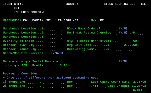 number, lot number, and warehouse number. Do not confuse The SKU File