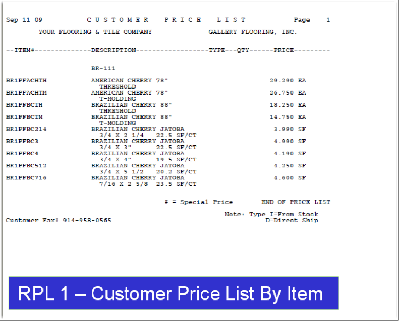 The first one is for a specific item (SAI 1090 0). If this customer were to place an order for this item, the price included in this file would override all other pricing information (i.e. out of the Price File, Promotion File, or Item File).