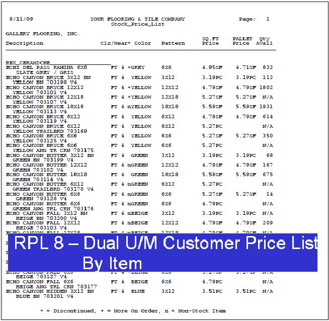 — Some examples are cut vs roll price, direct ship vs inventory price, and full pallet price