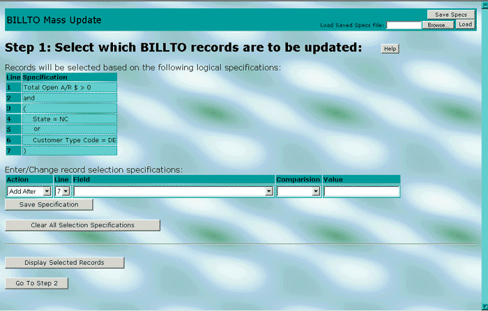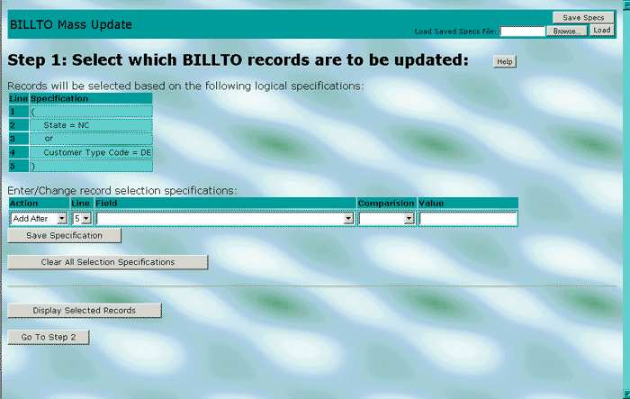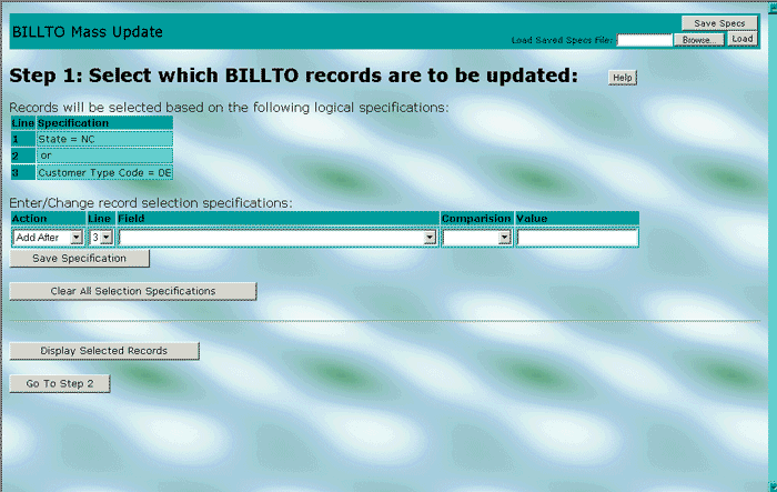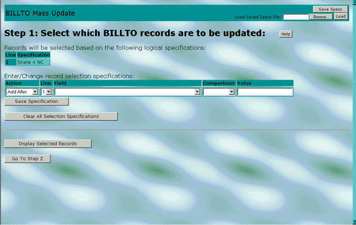 On the Billto Mass Update, Step1 screen, press Browse to locate the specs. A Choose File dialog box appears which you can use to locate the file.