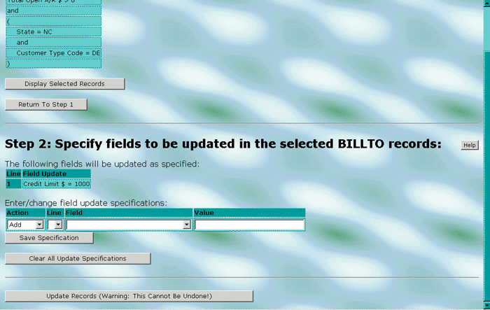 You can see exactly which records the system will update by clicking Display Selected Records. A table appears showing the records.