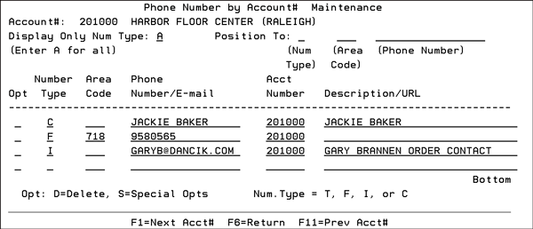 Account numbers should be assigned so that a numerical list of accounts reads alphabetically by corporate or last name. Assign the account number leaving 10 - 50 unused numbers between each account when you first create a Billto record. When the system is installed, Account 00001 is automatically set up as the purchasing account. Account 00002 is set up as the stock transfers account. Account numbers 0 - 99 are reserved for special system use. Account 99999 is set up as the Miscellaneous Cash Account. When adding new customers to your database, use account numbers from 00100 - 99998.