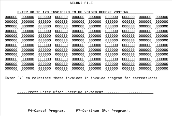 5. Press F7 to direct the system to process your request. When the invoice register prints, it shows a voided invoice as “void”.