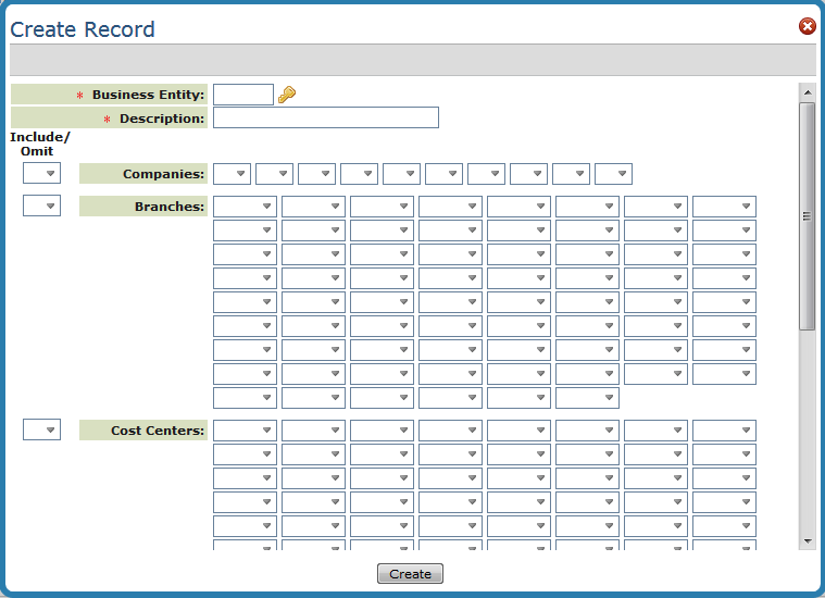 Include/Omit Companies Include/Omit Branches Include/Omit Cost Centers Include/Omit Warehouses Include/Omit Combo Codes |