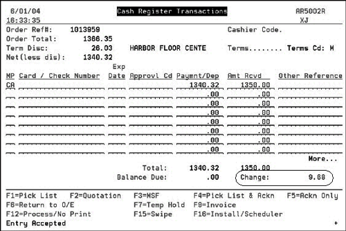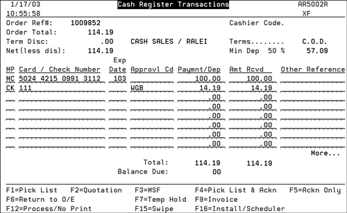 Note: The Method 2 Report Defaults are applied to all Cash Reports unless overridden. Example of the Single Payment cash register screen