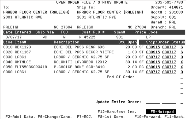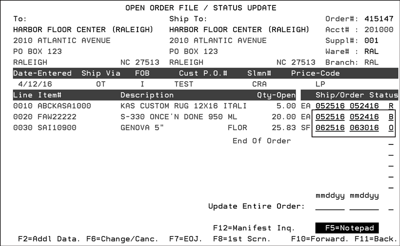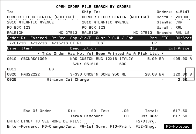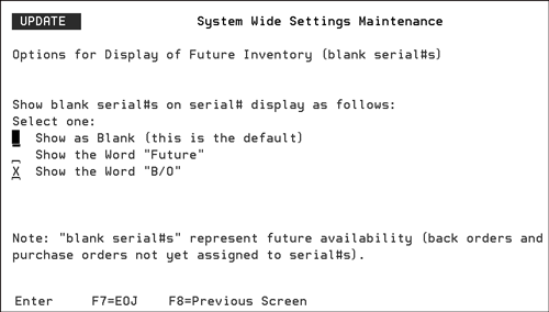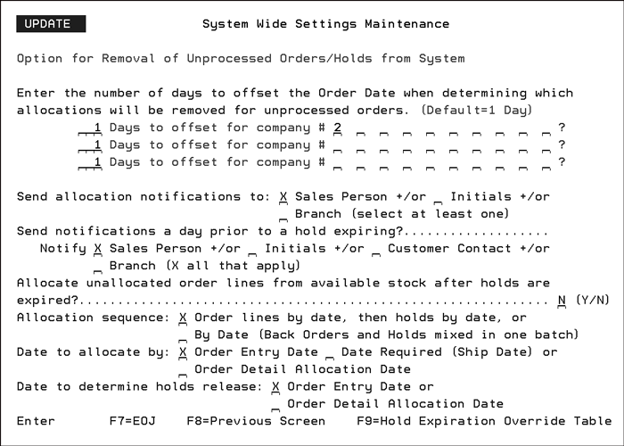 Some of the programs that are affected by this change are: Order Entry and Search, Allocation Swapping, Inventory Inquiry, Back Order Fill, Forms, Open Order Reports, and Order Inquiry.