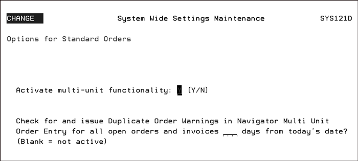 Multi-unit functionality facilitates the needs of our customers who service large commercial business on multi-unit commercial and residential properties. The option Check for and issue Duplicate Order Warnings in Navigator Multi Unit Order Entry for open orders and invoices __ from today's date allows you to enter the number of days you want the system to check for potential duplicate orders. |