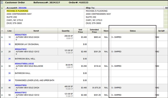 Note: Notice that some of the lines show the order totals and some don’t. If one or more lines on the order is suppressed, the Order Total does not show. Click on an order to see it’s details.