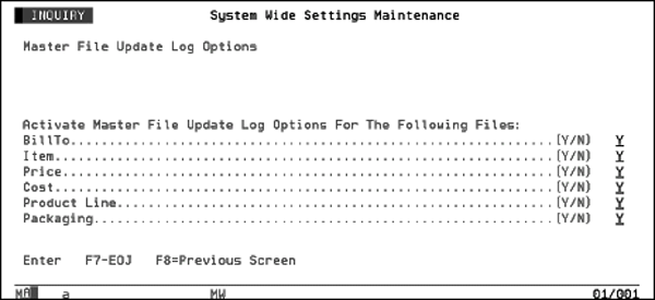 The Master File Update Log is an audit file which tracks whoever made updates to certain master files. This system-wide setting activates the Master File Update Log feature.