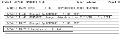 This setting includes two options that direct the system to stamp an order’s notepad whenever the Date Required is changed and/or when the order or purchase order is printed as a picklist.