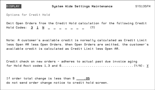 These credit hold codes perform the same functions as some of the established codes except they can omit open order information from the credit calculation.