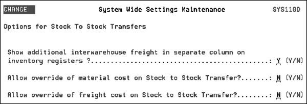 This setting contains options that provide control over your stock-to-stock transfers, which are always entered using account number 2 (X00002).