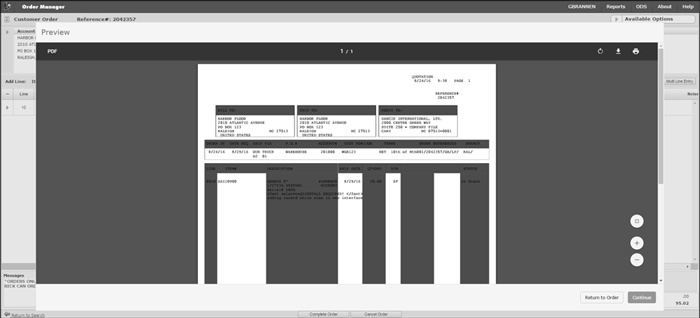 This print preview functionality applies to processed and unprocessed Customer Orders, Quotes, Direct Ship Orders and Credit Orders. It does not apply to Purchase Orders or Stock to Stock Transfer Orders. |