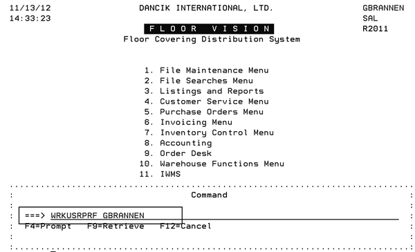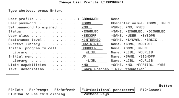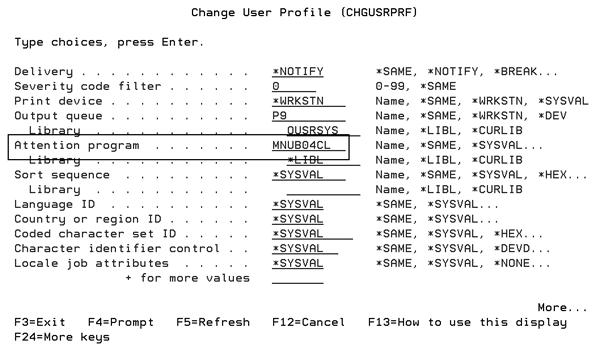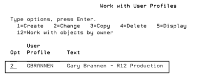 1. Enter the User Profile by entering the command WRKUSRPRF_XXXX (where XXXX is the user name) on a command line.