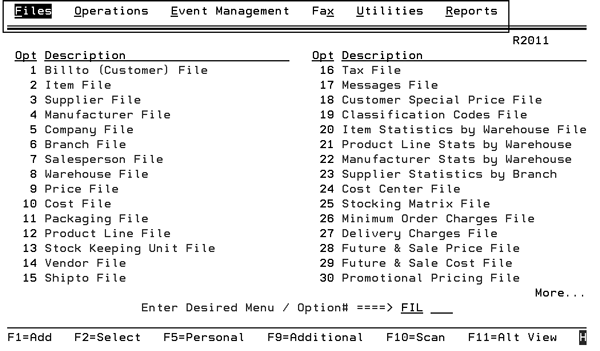 This menu bar is designed for accounting personnel and should be used only from accounting programs. It contains files and inquiries commonly used by accounting personnel. |