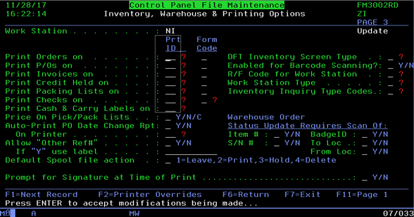 When jobs don't print to their perspective printers when Night Jobs is ran, it is most likely because Night Jobs is not locating the correct printer (for whatever reason). The system will look for a printer device based on the User control panel and/or workstation ID setup. If neither are setup with a printer device, the system will print the documents to printer P1. This is hard coded in the system.