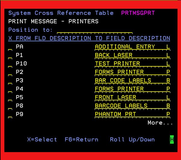 The Maintain PRTMSG Printer Table allows you to create and maintain a list of printers that can be used with the Print Message utility program, which is available from most menu bar programs.