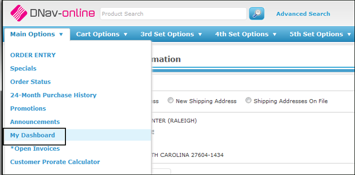 The dashboard allows you to quickly check: Processed Orders, Unprocessed Orders, Scheduled Deliveries, Recently Viewed Items, and Open Invoices.