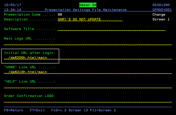 On the first screen of Presentation Settings, you can make the Dashboard appear upon login by defining the initial URL after login to ../de6200h.html/main.