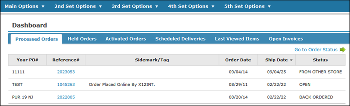 - Processed Orders - this includes both open and invoiced orders. A running list of the last 250 orders is displayed.