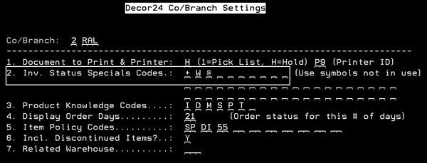- The item has a status code that is included in the setting Inv. Status Specials Codes on the Company/Branch Settings (menu option D24 4).