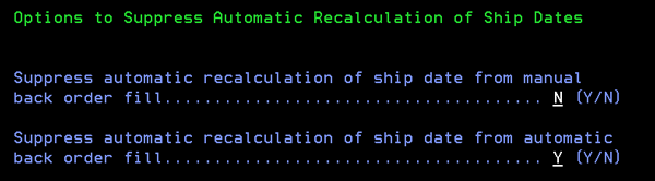 Suppress line ship date from printing on Acknowledgments - When this setting is Y, the line level Ship Date is not displayed on the Order Acknowledgment. The column is blank.