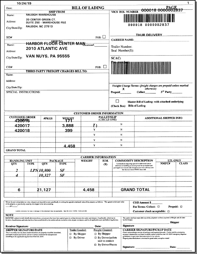 The system supports the Voluntary Interindustry Commerce Standards (VICS) for Bills of Lading (BOLs). The objective of standardizing the Bill of Lading is to ensure that the shipper, the carrier, and the customer (the consignee) are all receiving the information they need for the processing of the goods through the supply chain. The standard VICS BOL is intended for U.S. Less Than Truck Load (LTL) and Truck Load (TL) ground transport. Included with the standard Bill of Lading form is a standard Bill of Lading number. The standard Bill of Lading form and number ensure that all key data elements are present and documented in a uniform manner. Use of this standard Bill of Lading will result in:
