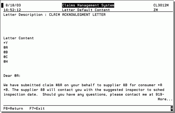 18. This area contains pre-built letters ready for use. Special codes within the letters are used to pull information from different parts of the claims system, thereby automating the letter generation process.